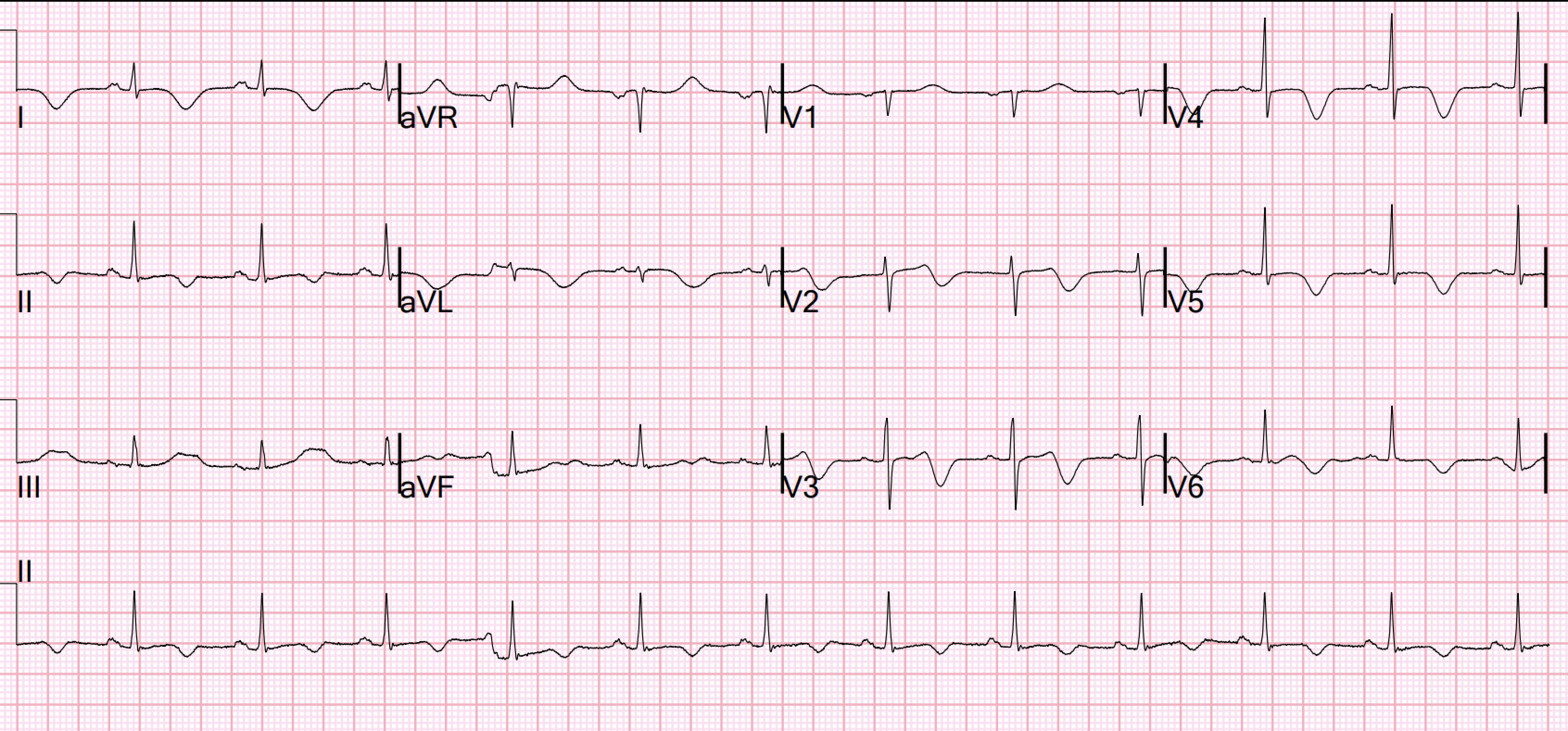 | Figure-1: The initial ECG in today's case. (To improve visualization — I've digitized the original ECG using PMcardio). |